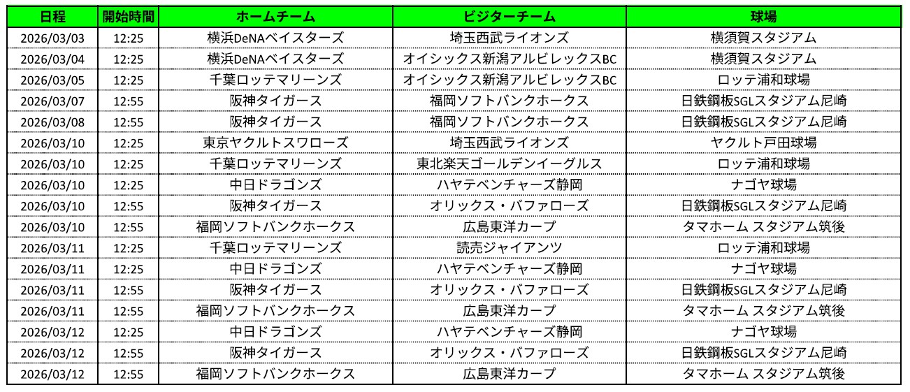 【ファーム・リーグ春季教育リーグ イージースポーツ配信日程】